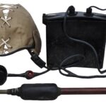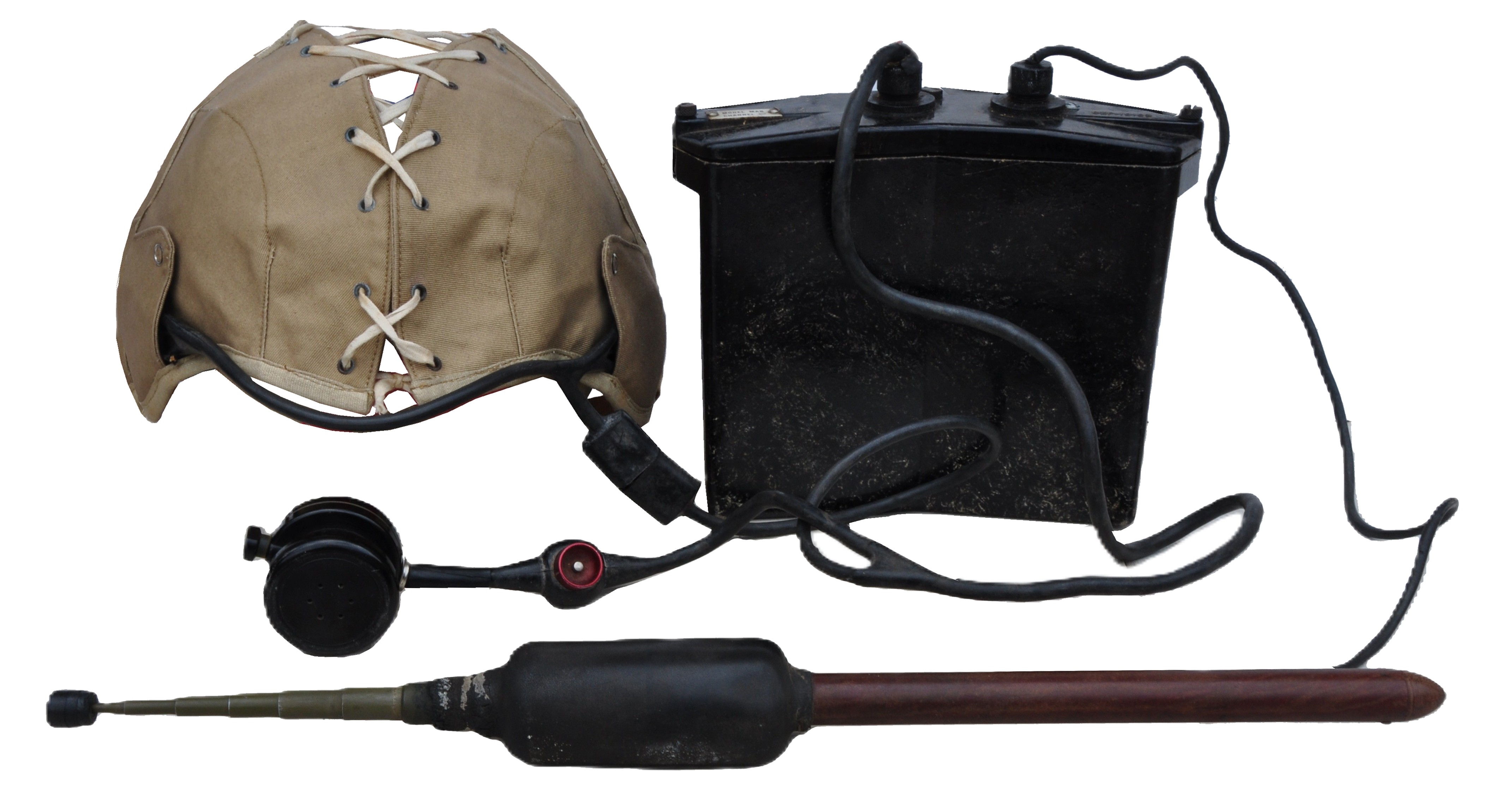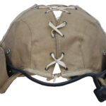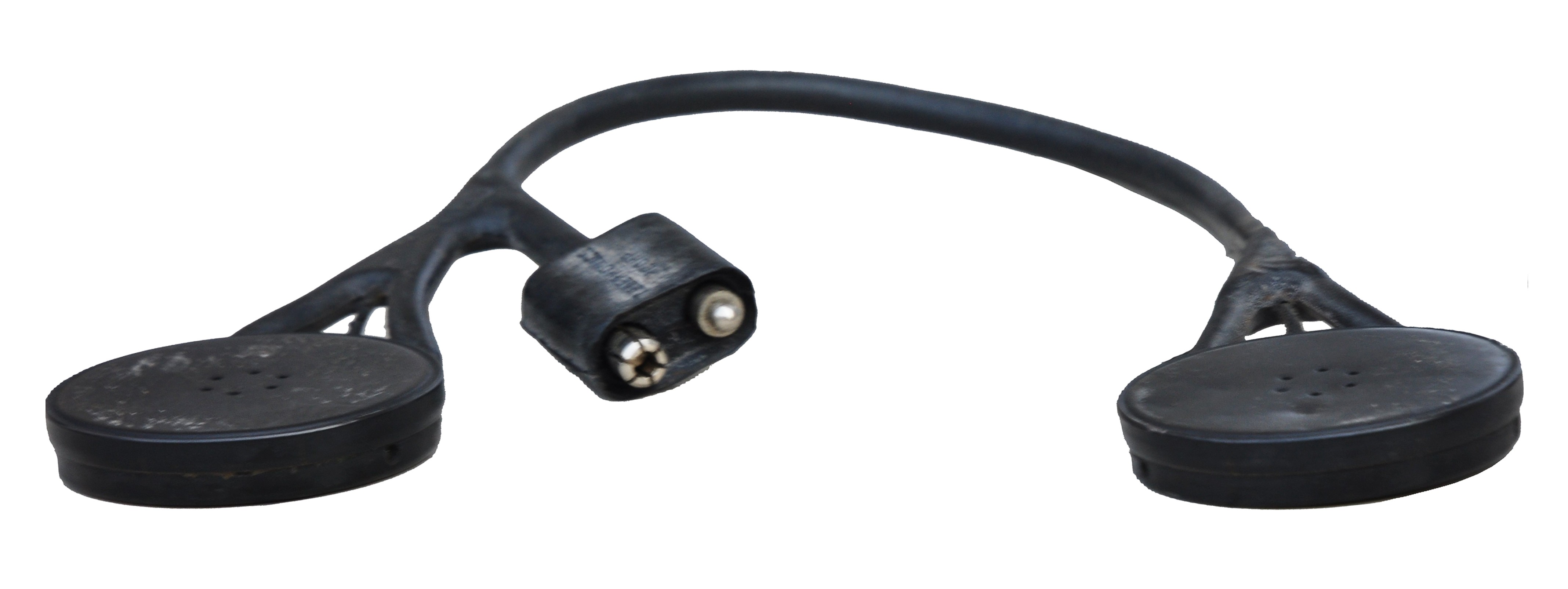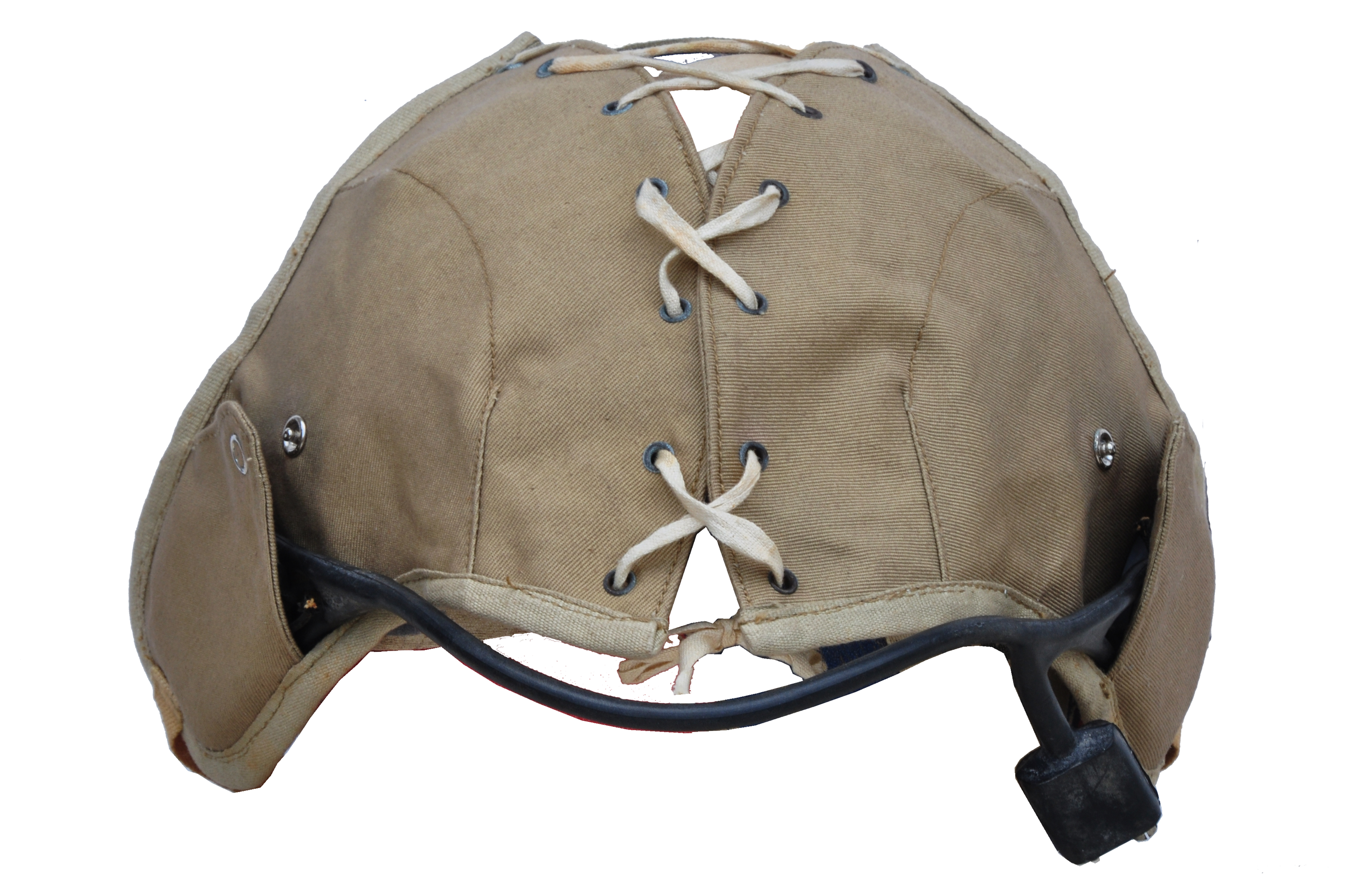 אוזניות מורכבות במעטה בד מותאם לראש המפעיל, מתחת לקובע פלדה תקני.